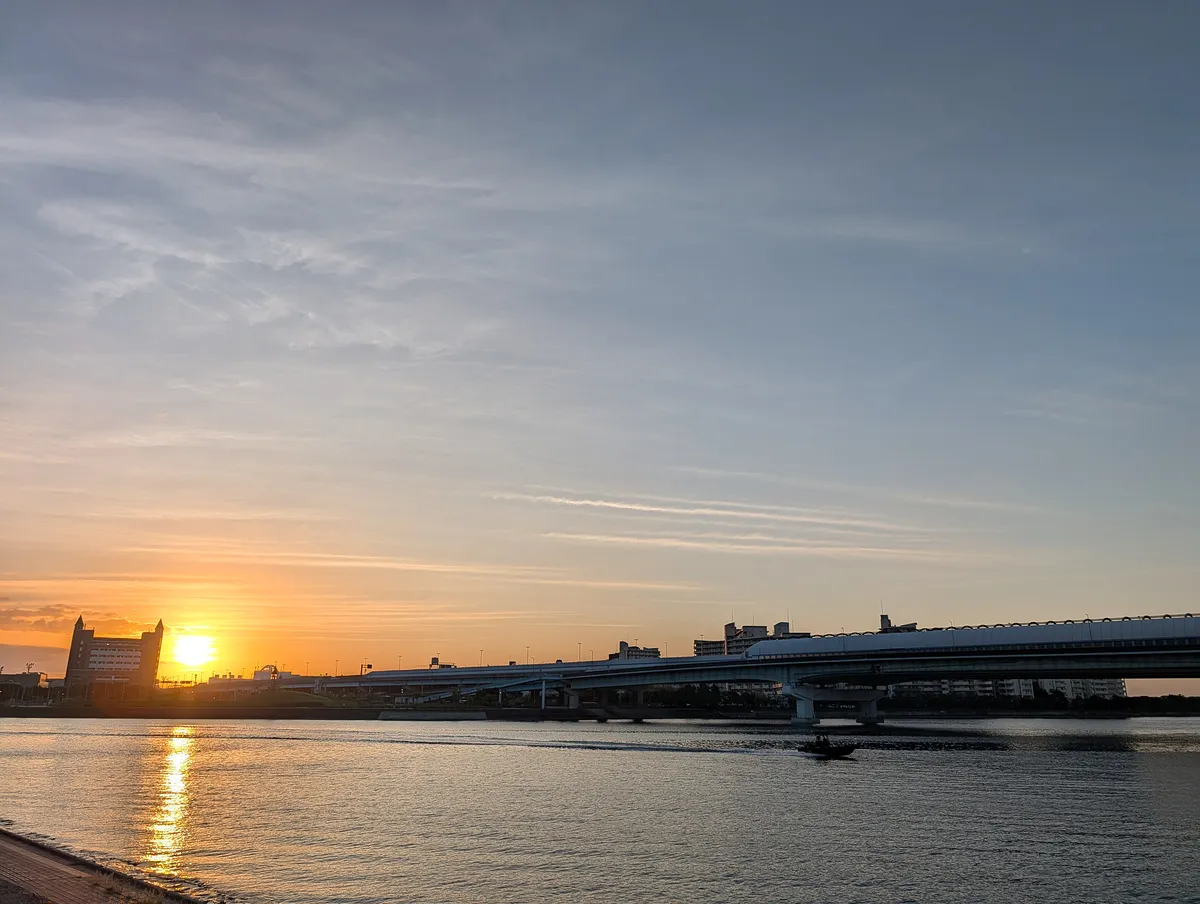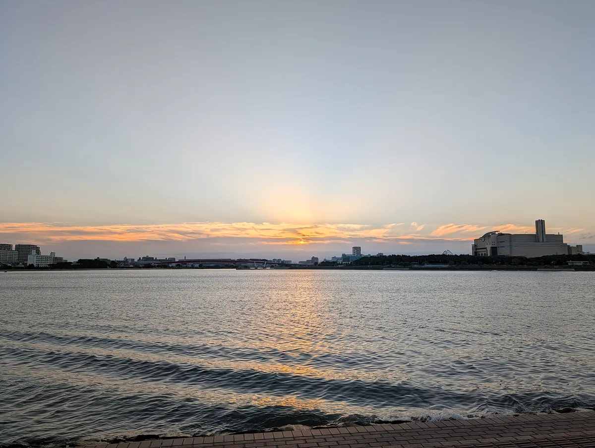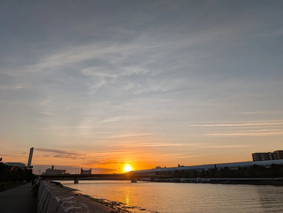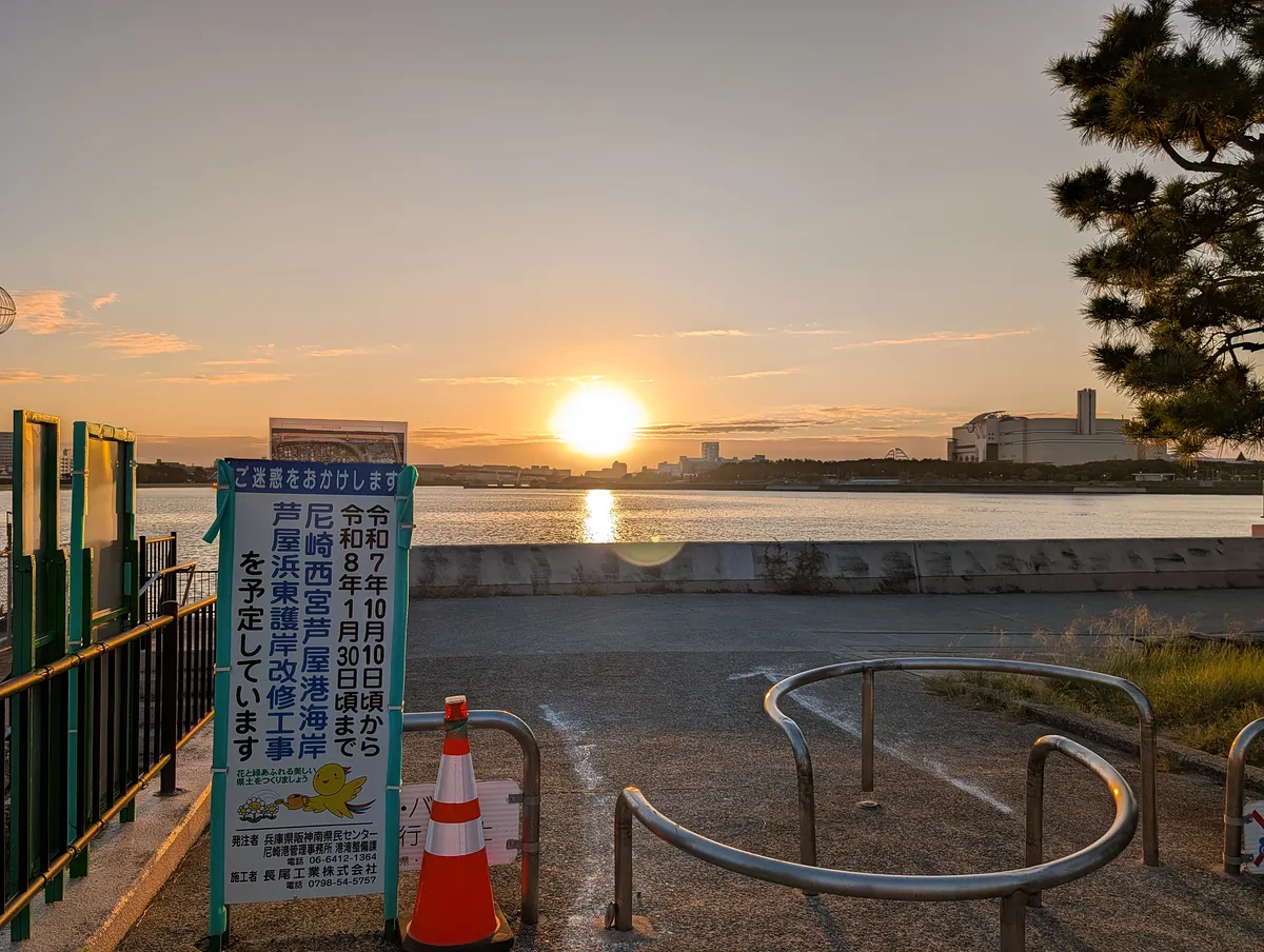 今週から、いつも朝日を撮っている場所の護岸工事が始まるということで、ルートを少し変えなきゃなーと思っていたんですが、封鎖されるのは本格的に工事が始まってからぽいので、まだ少し猶予はありそう。