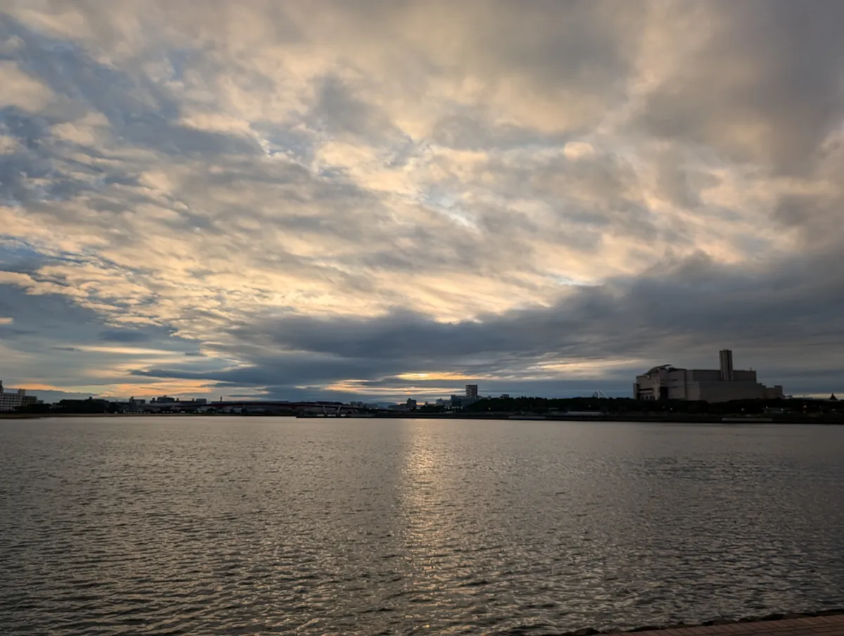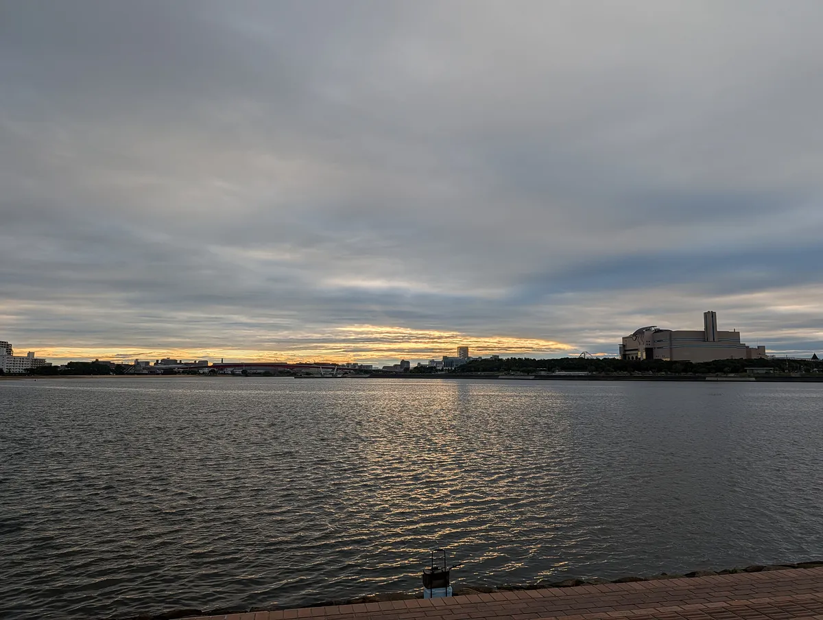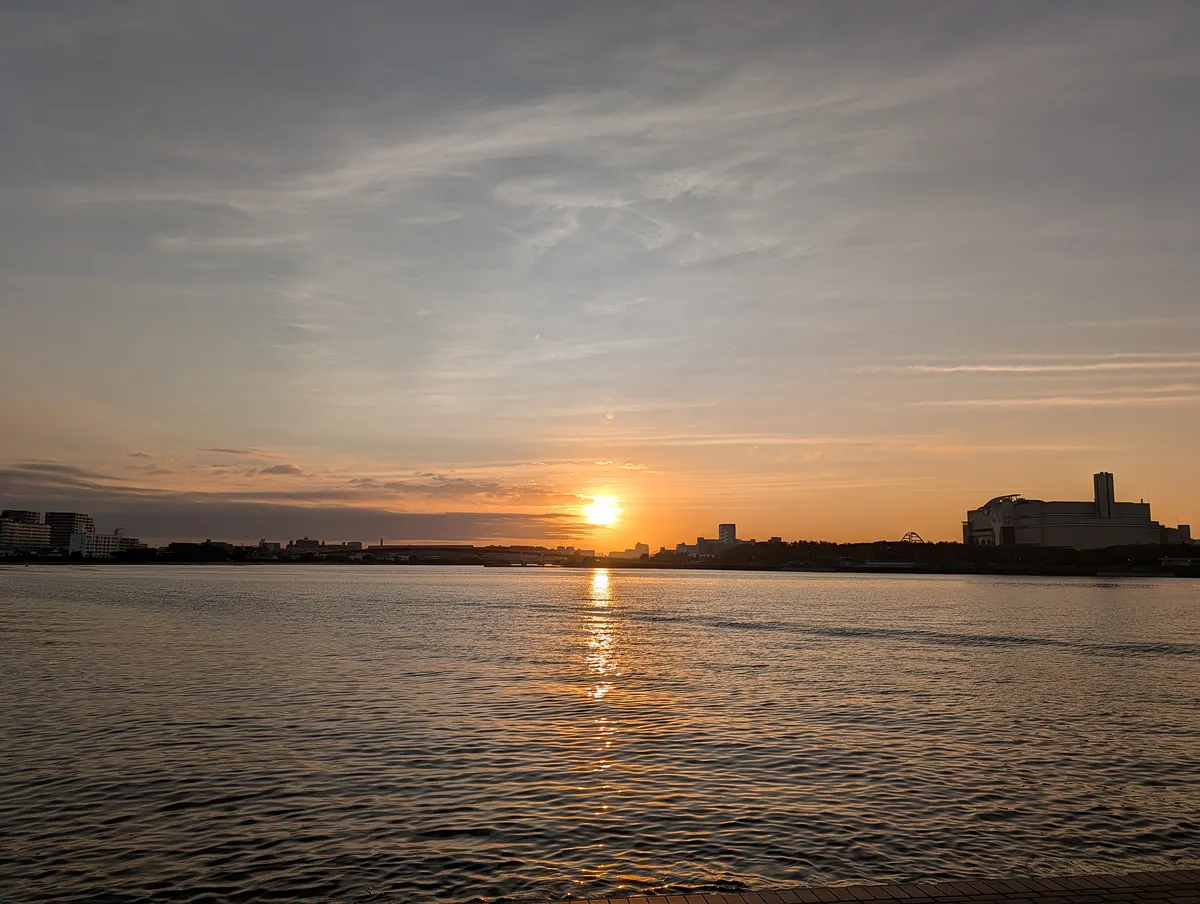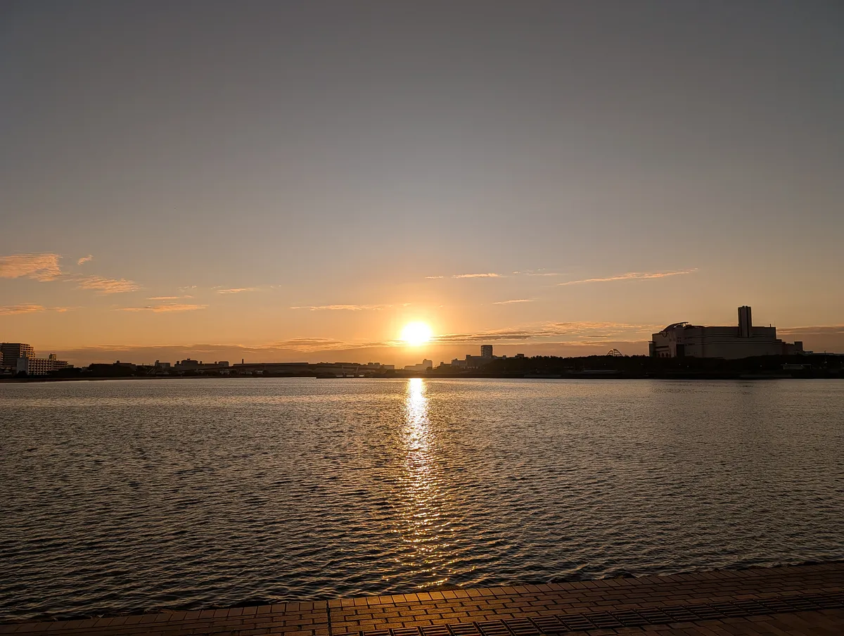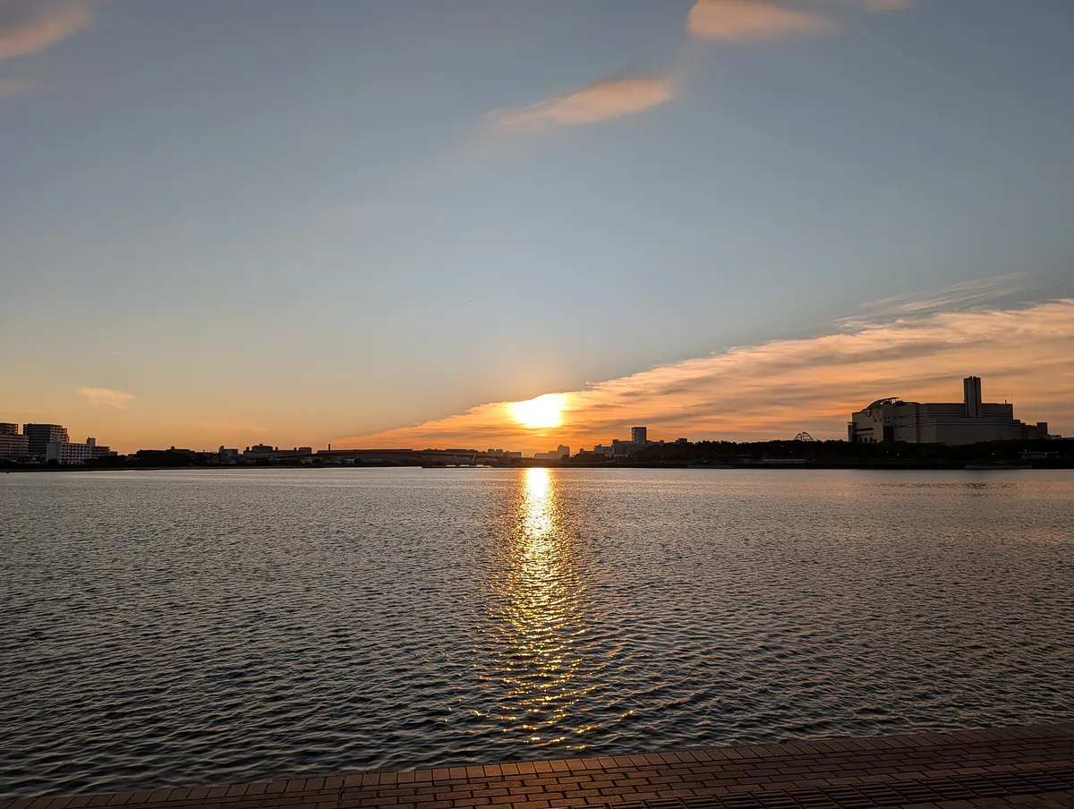 今週から、いつも朝日を撮っている場所の護岸工事が始まるということで、ルートを少し変えなきゃなーと思っていたんですが、封鎖されるのは本格的に工事が始まってからぽいので、まだ少し猶予はありそう。