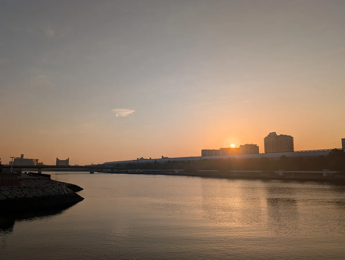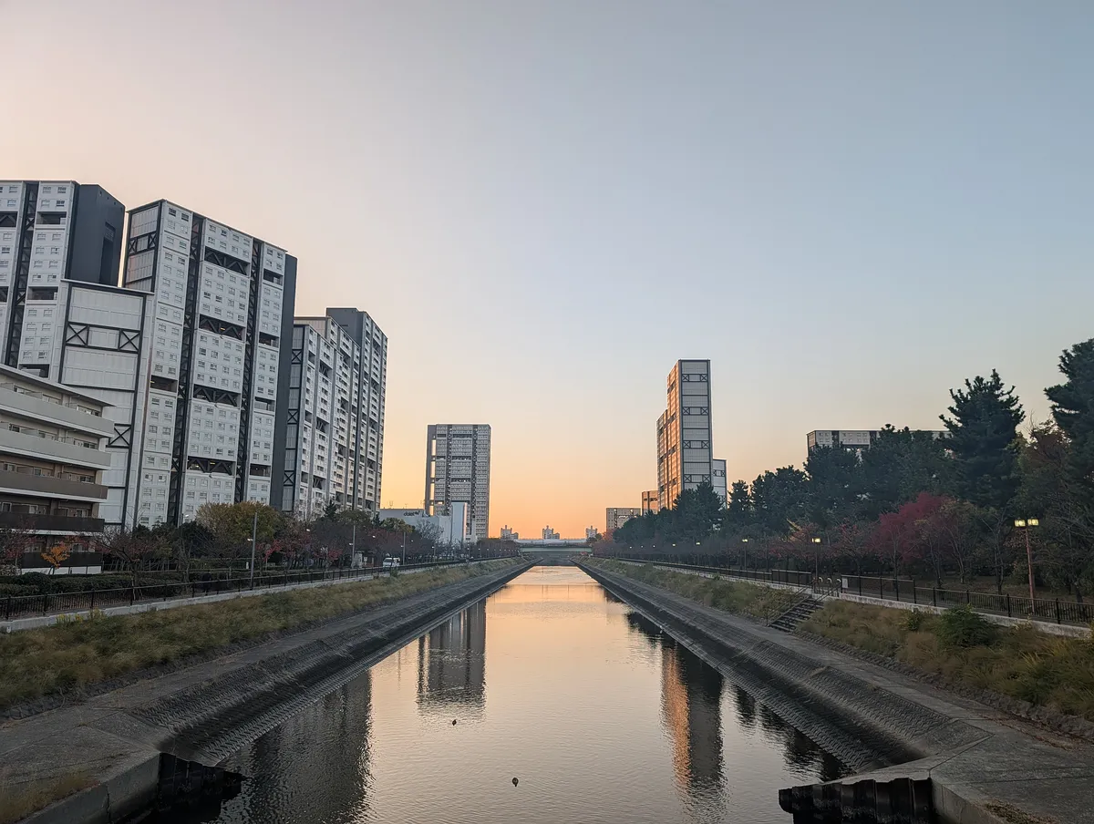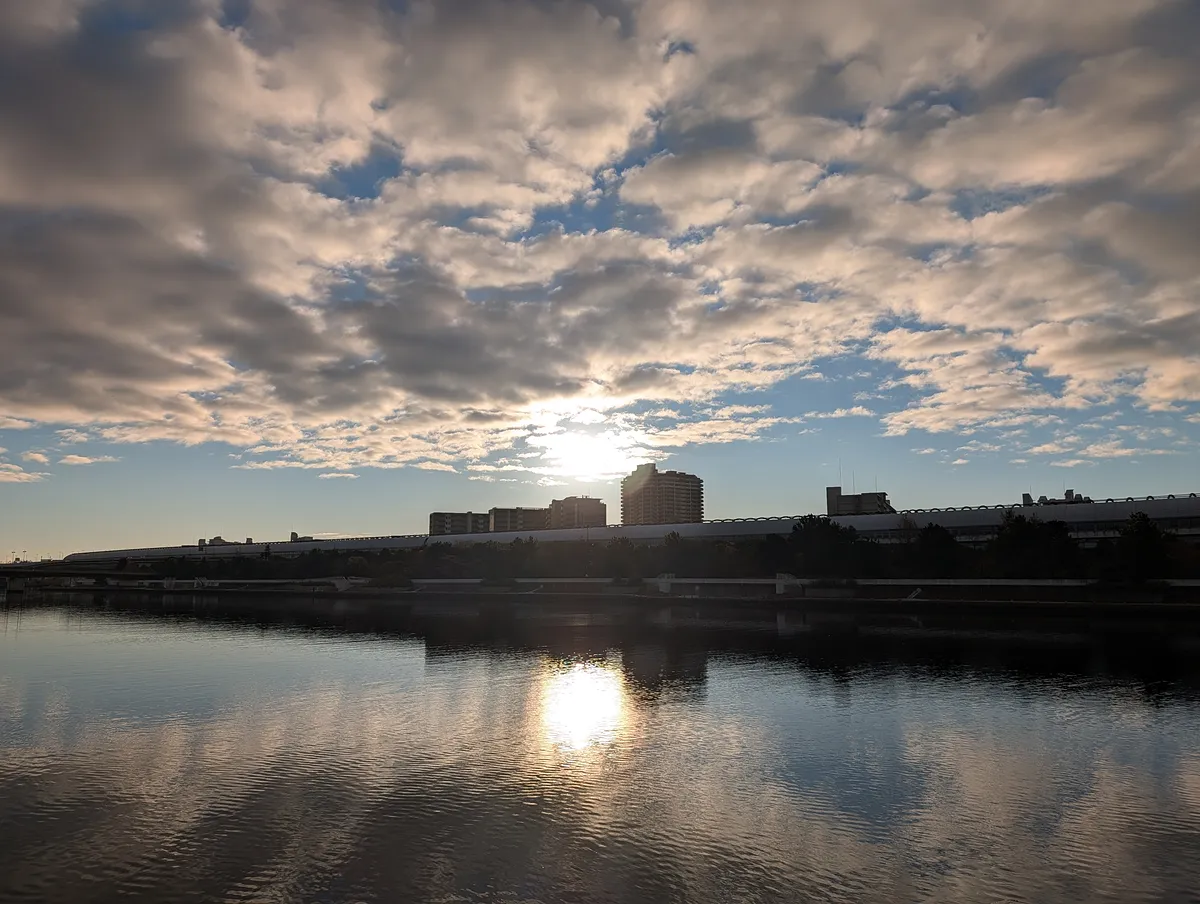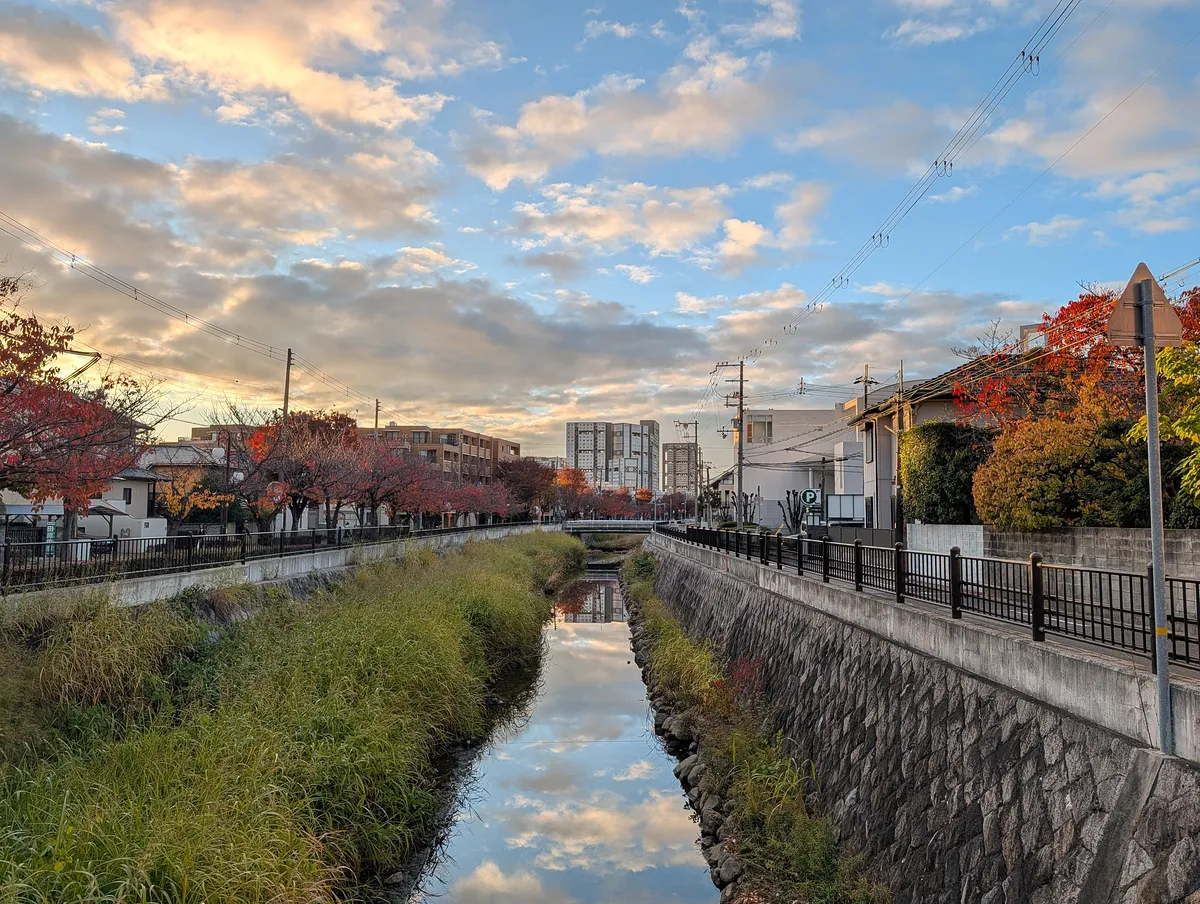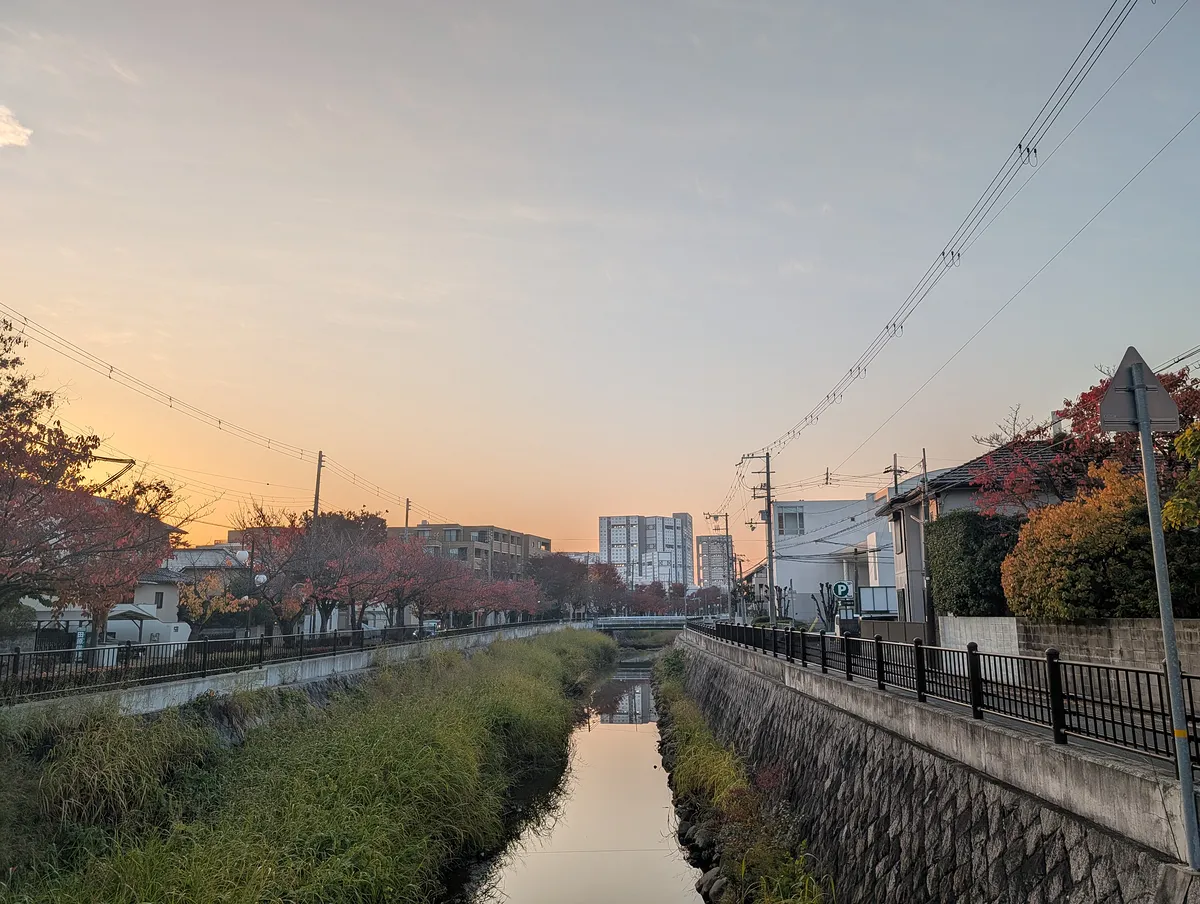 空模様、紅葉の赤、川面の反射、すべてが好みすぎる朝だった。