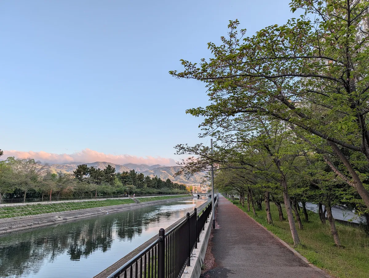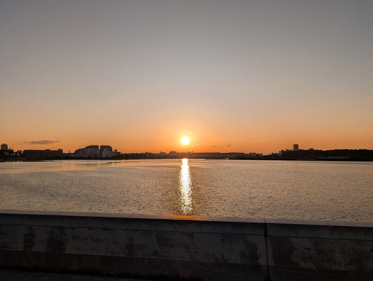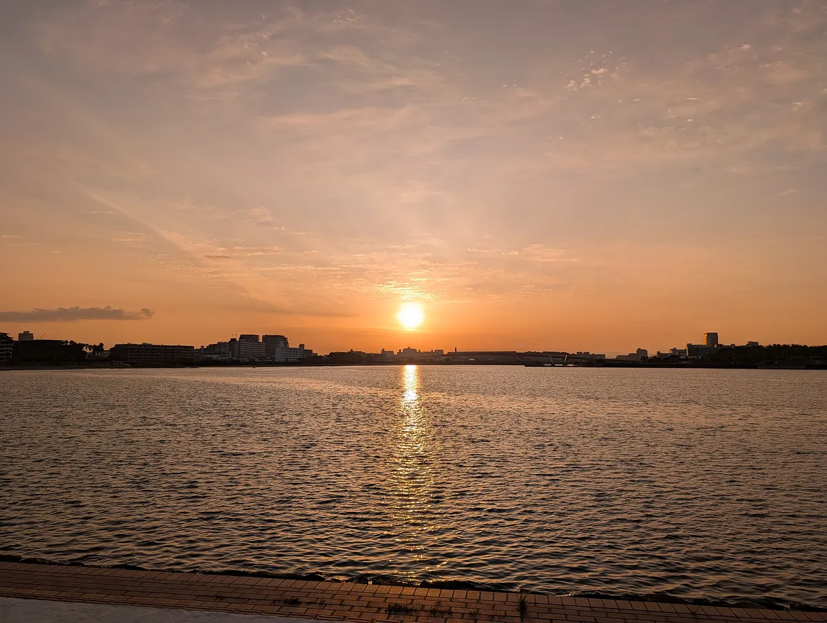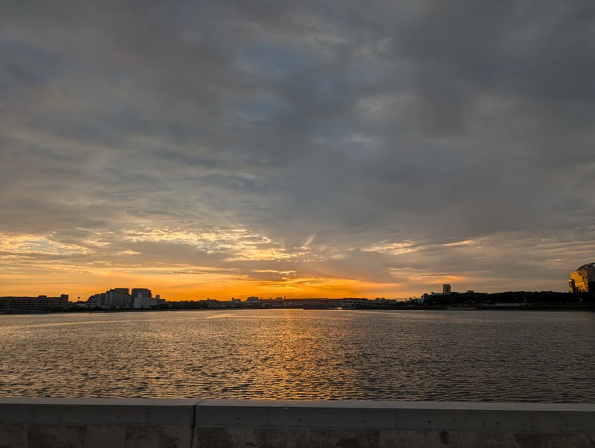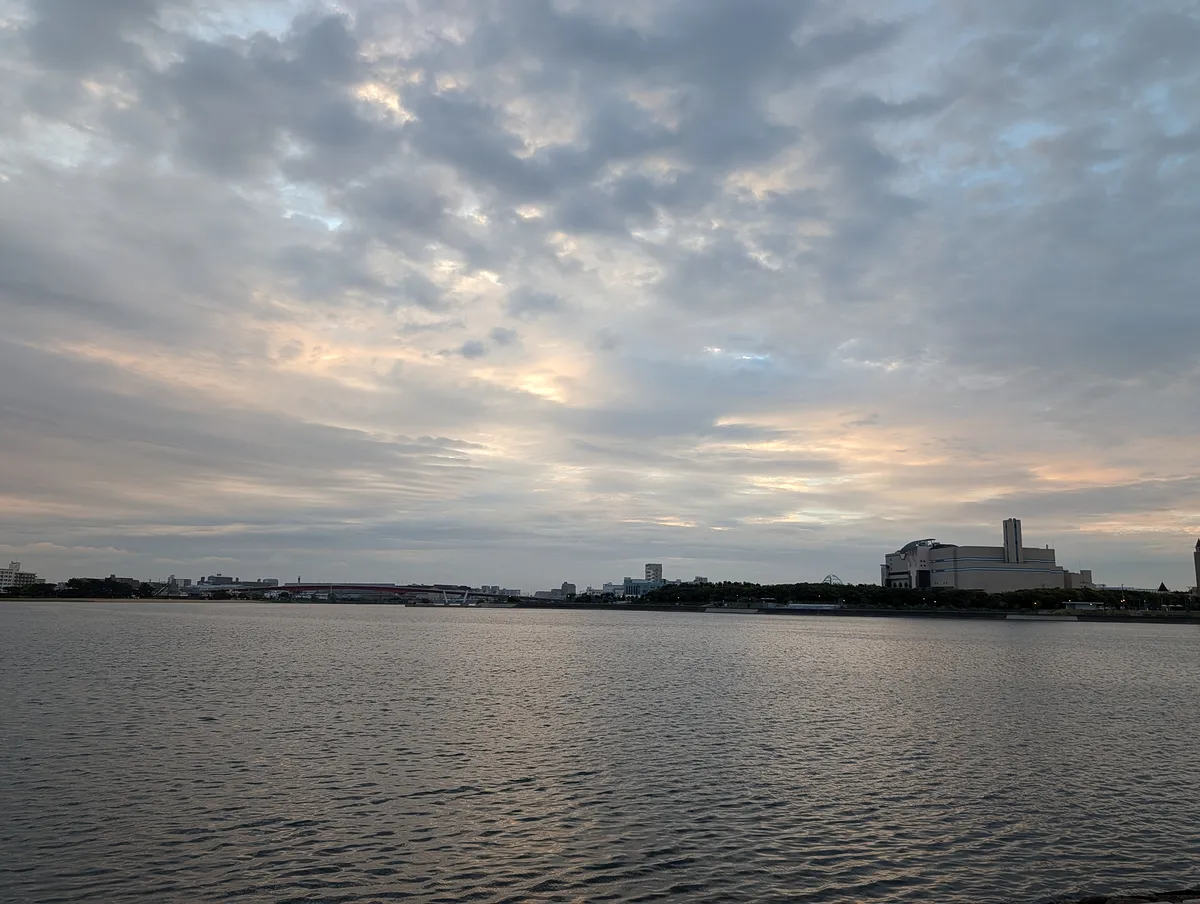 今朝は綺麗な巻積雲が出てて、それが水面に反射して素晴らしかった。